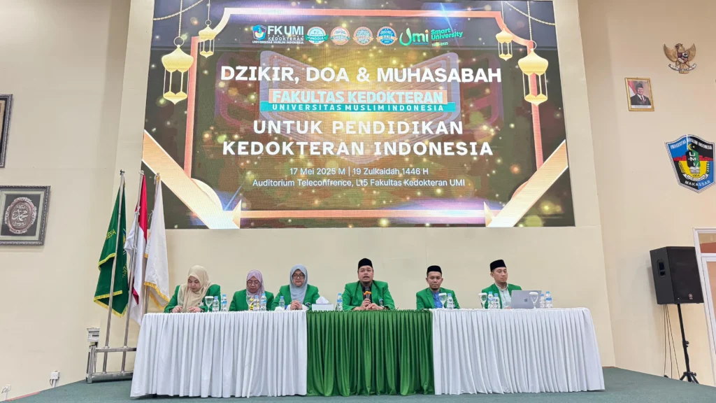 Makassar – Dalam suasana yang penuh refleksi dan semangat pembenahan, Fakultas Kedokteran Universitas Muslim Indonesia (FK UMI) menggelar kegiatan Muhasabah Bersama sebagai bentuk kepedulian dan solidaritas terhadap berbagai tantangan yang tengah dihadapi dunia pendidikan kedokteran di Indonesia. Kegiatan ini dilaksanakan pada Sabtu, 17 Mei 2025, bertempat di Auditorium Teleconference Lantai 5 FK UMI.