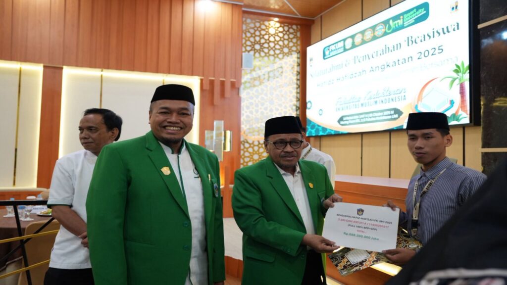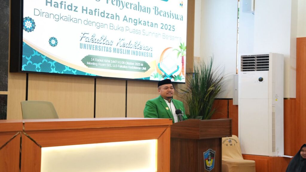 Makassar – Sebanyak 11 mahasiswa baru Fakultas Kedokteran (FK) Universitas Muslim Indonesia (UMI) menerima Beasiswa Hafidz Hafidzah tahun akademik 2025. Beasiswa ini diberikan sebagai bentuk apresiasi bagi mahasiswa penghafal Al-Qur’an yang telah menuntaskan hafalan 30 juz.