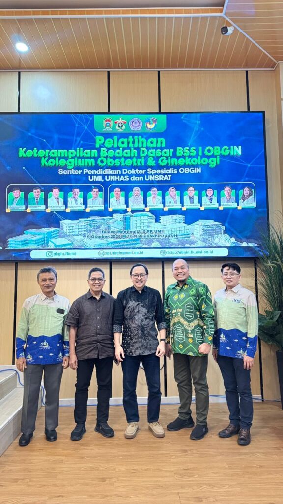 Makassar, Kamis, 9 Oktober 2025 – Fakultas Kedokteran Universitas Muslim Indonesia (FK UMI) melalui Program Studi Pendidikan Dokter Spesialis Obstetri dan Ginekologi (OBGIN) menyelenggarakan kegiatan Faculty Meeting dan Pelatihan Keterampilan Bedah Dasar (Basic Surgical Skill/BSS). Kegiatan ini dilaksanakan bekerja sama dengan Kolegium Obstetri dan Ginekologi (POGI) serta diikuti oleh peserta dari Pusat Pendidikan Dokter Spesialis OBGYN UMI, Universitas Hasanuddin (UNHAS), dan Universitas Sam Ratulangi (UNSRAT).