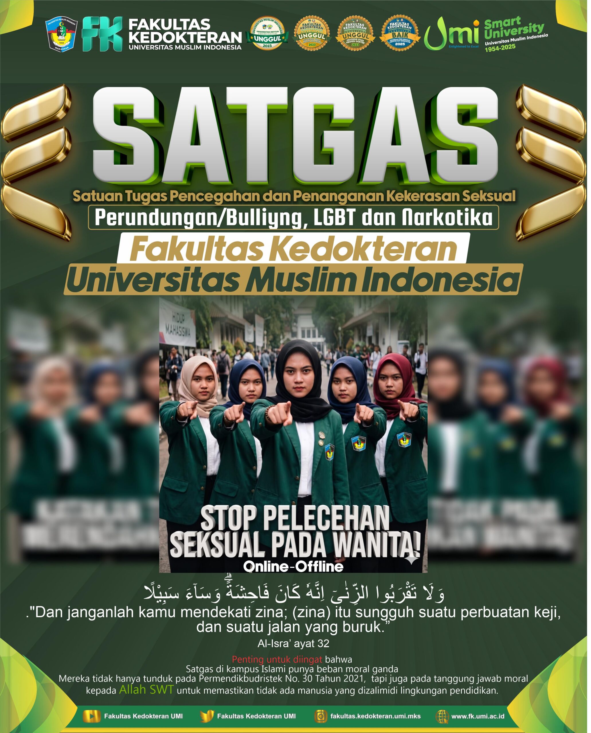 Makassar, fk.umi.ac.id — Satuan Tugas Pencegahan dan Penanganan Kekerasan Seksual, Perundungan/Bullying, LGBT, dan Narkotika Fakultas Kedokteran Universitas Muslim Indonesia (FK UMI) kembali menegaskan komitmennya dalam menciptakan lingkungan kampus yang aman, bermartabat, dan bebas dari segala bentuk kekerasan.