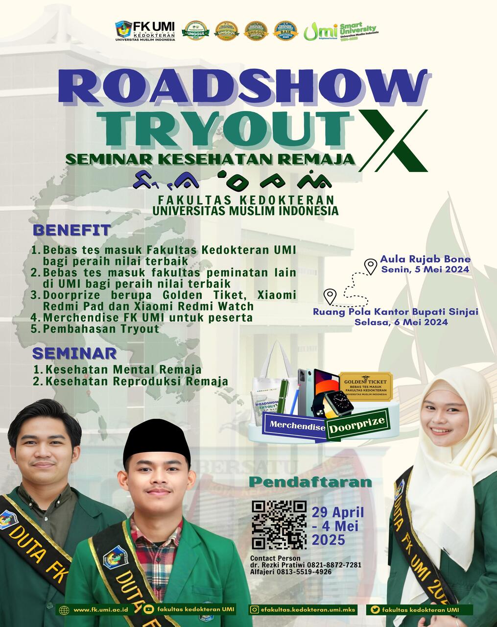 ROADSHOW & TRYOUT FK UMI 2025"Langkah Awal Menuju Dunia Kedokteran" Fakultas Kedokteran Universitas Muslim Indonesia (FK UMI) mengadakan kegiatan Roadshow & Tryout Jalur Prestasi, yang bertujuan memperkenalkan dunia pendidikan kedokteran kepada siswa-siswi SMA kelas 11 dan 12. Kegiatan ini dilaksanakan oleh Departemen Eksternal FK UMI bekerja sama dengan pihak fakultas dan sekolah. Melalui kegiatan ini, […]